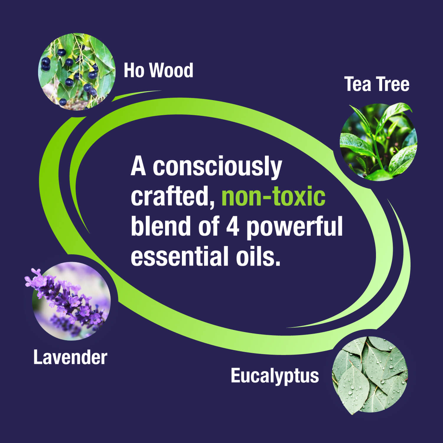 Water, Polysorbate-20, Ho Wood Oil (Cinnamomum camphora), Tea Tree Oil (Melaleuca alternifolia), Lavender Oil (Lavandula angustifolia), Eucalyptus Oil (Eucalyptus globulus), Phenoxyethanol, Caprylyl Glycol, Mixed Tocopherols